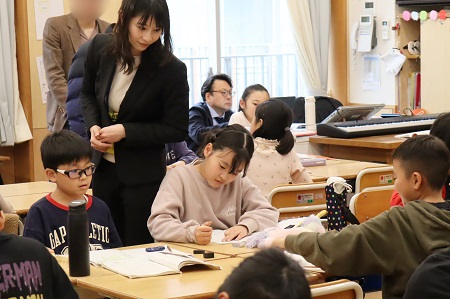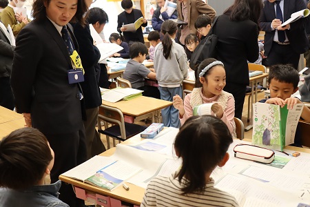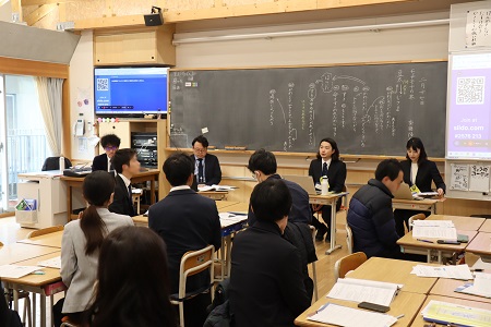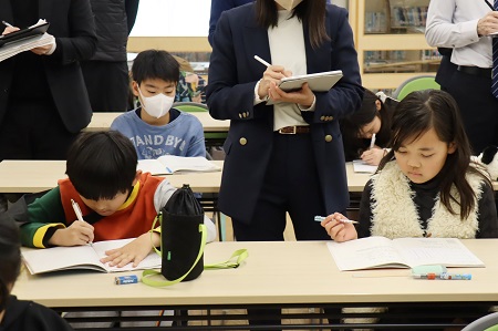 2月17日(土)、数学(算数)科・国語科の公開授業研究会を行いました。初等学校では、公開授業を基に指導法や指導内容について意見交換、情報交換を行うことを目的とした授業研究会を定期的に開催しています。私立、公立を問わずさまざまな小学校の先生、教育関係者の方々が150名参加されました。今回は、4年白樺組と5年楓組が数学の授業を、2年桧組と3年桂組が国語の授業を行い、参加された先生方にご覧いただきました。