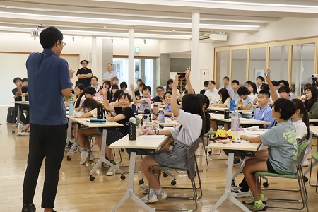 6月28日(土)に成城学園初等学校主催の数学・社会の公開授業研究会を開催しました。初等学校では、教育関係者の皆様を対象に公開授業を実施し、授業者と参加いただいた方同士で教育法や授業方法、学級経営について意見交換、情報交換を行い、これからの授業に生かしていくことを目的とした授業研究会を定期的に開催しています。私立、公立を問わず様々な小学校の先生、教育関係者の方々約50名が参加されました。今回は、「授業と学級経営の根っこを語る」をテーマに、数学と社会でそれぞれ6年生を対象とした公開授業を1つずつ行いました。