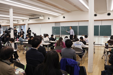 1月17日(土)、成城学園初等学校にて数学科・社会科授業研究会を開催しました。初等学校では、教育関係者の皆さまを対象とした公開授業や実践紹介を定期的に実施しています。授業者と参加者が、教育法や授業の進め方について意見交換、情報交換を行い、日々の授業の改善に生かしていくことを目的としています。