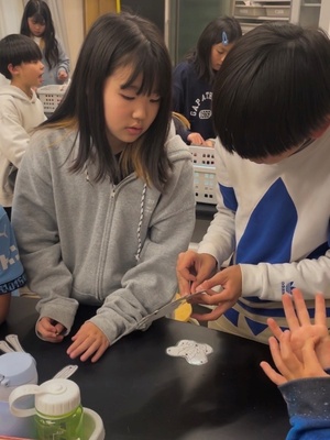 また、理科は授業時間だけで学ぶ教科ではないので、日常的に科学や自然の不思議さに触れられるように、理科室周辺の「理科展示」も工夫して行っています。休み時間や昼休み等に授業時間だけでは疑問が解消しなかった子たちが、「自由理科」をしに来ることもあります。