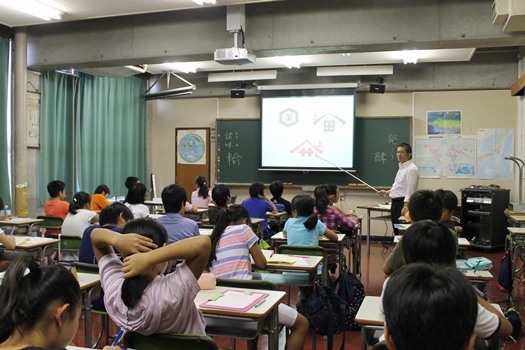 社会は醤油をテーマに産業の発展についての授業。先生からの問いかけに、子どもたちは次々と発言。