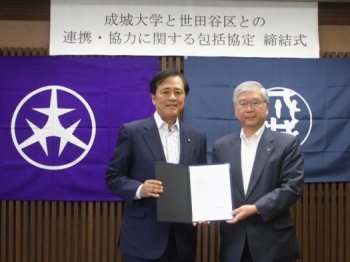 成城大学は、2015年7月7日(火)に世田谷区と行政における様々な分野において人的交流、知的・物的資源の相互活用を図り、地域社会の持続的な発展に資することを目的とした包括協定を締結いたしました。