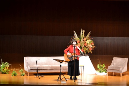 良子さんの澄んだ歌声とギターの音色が講堂いっぱいに響きわたり、その臨場感はまさに心震えるひとときでした。