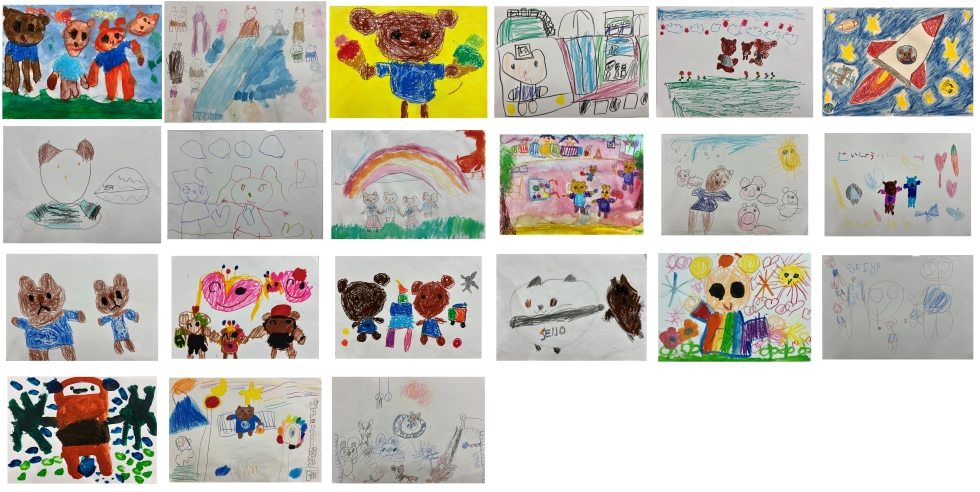 子どもたちが描いてくれたくまちゃんはみんな個性豊かでいろいろな表情を見せてくれています。