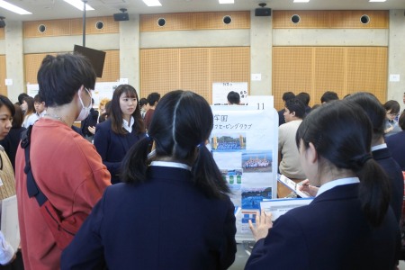 3人は、事前に作成した活動紹介のポスターを掲示して説明するポスターセッションに参加しました。聴衆のほとんどは大学の先生や大学生。とても緊張しましたが、自分たちの活動について写真を交えながら説明し、質問に対しても丁寧に答え、たくさんの方に興味を持って聞いてもらうことができました。