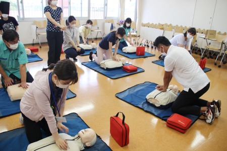 講師からは「ライフセーバーでも事故のときには動転してしまうことがある。もしものときに体が自然に動くようになるには継続した訓練が大切」という話がありました。子どもたちの大切な命を守り、いざというときに迅速な対応ができるよう、毎年繰り返し受講する必要性を再確認しました。