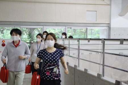 6月18日、幼稚園の教職員13名が心肺蘇生法講習会を受講しました。中高体育科の教師でもあり、ライフセービング協会の副理事長でもいらっしゃる松本先生に今年も講師をお願いしました。最初に会場である、中高体育館のAEDの設置場所や中身を確認しました。次に「プールでの溺れ事故」を防ぐための講義があり、首都圏にある保育園・認定こども園でのプールの時間を撮影した226時間におよぶ映像を分析した調査結果をもとに、どのようなときに事故が起こるのか、どういった注意・意識が必要なのかを学びました。特に監視役は監視に専念することが大事であるとお話いただきました。その後人形を使って胸骨圧迫とAED操作法の実技演習を行いました。実際に体育館内を走ってAEDを届けるなど、実際の事故を想定したリアルな演習となりました。