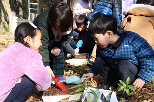おいしいイチゴができますように —年中組イチゴの苗植え—