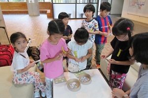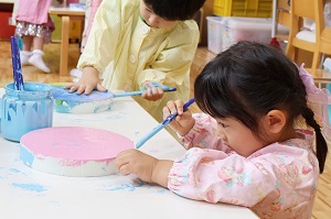 筆を使って絵の具で塗ってみよう -年少組造形活動-