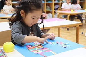 小さな紙を貼り付けて描く素敵な絵 —年少組造形活動—