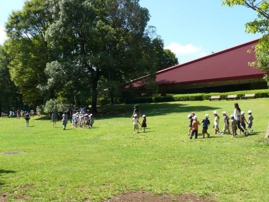 9月24日(火)に『秋の遠足』で多摩動物公園に出かけました。年少の2クラスは、保護者の方と一緒にそれぞれクラス毎のバスで、年中と年長は、子どもだけで学年毎のバスで、合計4台のバスで元気よく出発しました。成城から約1時間。バスの中で歌やクイズを楽しむうちに動物公園に到着。