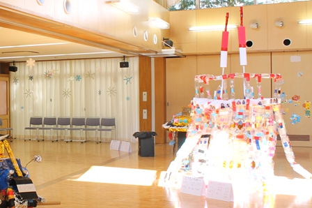 大勢の方にお越し頂きまして有難うございました。ご家族に作品を説明する顔は満足そうだったり、恥ずかしそうだったり、様々でしたが、完成させた達成感はみんなが感じていた事でしょう。3学年共に自然物を使った作品がありました。学園の中で見つけた自然物が個性豊かな作品となり、味わいが出ていたのではないでしょうか。一人ひとりの力を結集して大きな作品になり、自分だけではなく友だちと作品を共有できる楽しさも感じたことでしょう。年中・長が作った共同作品5つは、文化祭が終わり乗ったり入ったりしてみんなで楽しんでいます。3月の卒園の頃まで続きます。