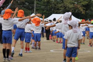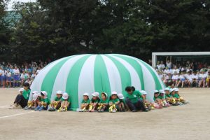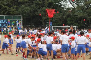 待ちに待った幼稚園・初等学校合同の第23回秋の運動会が初等学校グラウンドでありました。春の運動会とは違い、初等学校のお父さんやお母さんもいるので「観客」がいっぱい。緊張したかな?でも、園児たちはこれまで一生懸命練習してきた体操を上手に踊ったり、走ったり、堂々とした姿を見せていました。玉入れでは5年生のお兄さん、お姉さんに助けてもらいながら一緒に戦い、合同運動会らしい競技でした。