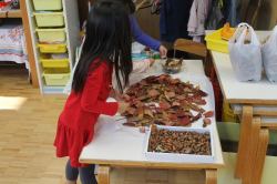 先生役の学生さんに拾った落ち葉を渡しました