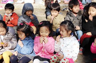 初等学校のお姉さんたちも「いいなぁ、焼き芋食べたいなぁ~」