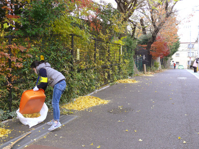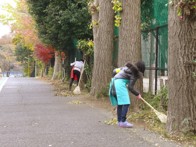 恒例となった、保護者による周辺の落ち葉掃き。ありがとうございます!