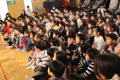 見慣れない楽器を好奇心いっぱいの目で見つめる園児たち!