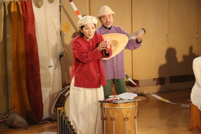 「ロバの音楽座」は、古楽器や民族楽器による演奏や遊びを楽しんでもらう楽団で、現在NHK Eテレ「いないいないばあっ!」の人形劇コーナーの音楽も担当しています。面白い形をした楽器から流れるメロディーは本当にやわらかくて優しい音色。木の温もりに包まれたホールは、とても穏やかな空気が流れていました。