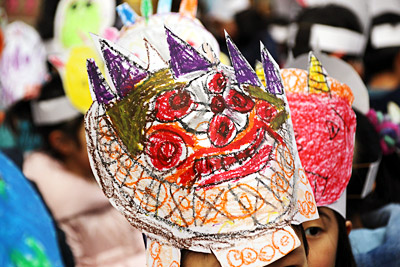 自分で描いた鬼のお面。やっつけたいのは泣き虫鬼さんかな?