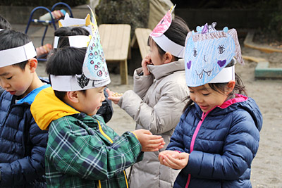 元気いっぱい豆まきをして心の中にいる鬼ともさよならした子どもたち。4日の立春から始まる新しい1年も楽しく過ごすことができそうです。