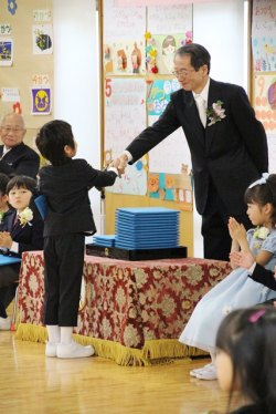 「幼稚園に遊びに来てください!」と最後に前田園長が話したように、これからも卒園児たちの成長を楽しみにしています。