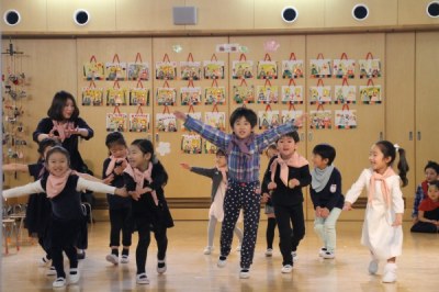3月3日は桃の節句。幼稚園では、ひなまつりの催しを行いました。「うれしいひなまつり」の歌を歌ったり、女の子の幸せを祈るという本来の目的はもちろんですが、毎年、園児たちが表現活動の発表を行います。教室前とホールには園児一人ひとりが作った「世界に一つだけのおひなさま」が飾られ、客席ではたくさんの保護者の方々が見守っていました。