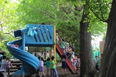 杉、くぬぎ、いちょう、けやき、桜、赤松など、園庭には本当にたくさんの木々がそびえ立っています。9月末に完成予定の新しい園庭は、この木々たちを残しながら、より安全で快適な遊び場へと生まれ変わります。