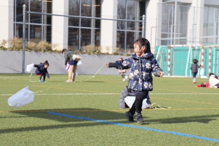 お友だちと一緒に思いっきり走って凧揚げを楽しみました