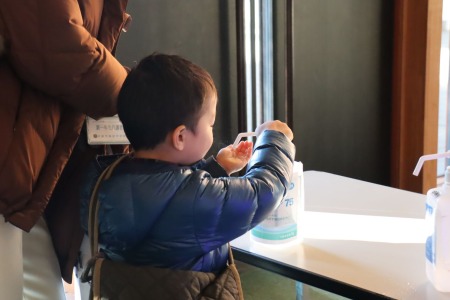 検温と消毒の習慣にもすっかり慣れた子どもたち。入口でしっかり対策して会場に入ります