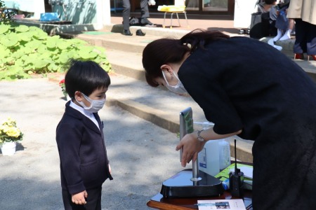 4月11日(日)、成城幼稚園で入園式が行われ、なのはな組、れんげ組、計40人が仲間入りしました。3密を避けるため式を4回に分けて、検温、手洗い、消毒を徹底するなど感染予防対策をとりながら実施しました。