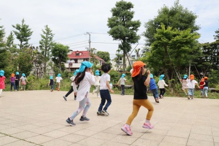 幼稚園に戻り、年長組と年中組は園庭にシートを敷いてみんなでお弁当を食べました。例年と形態は変わりましたが、子どもたちはみんな遠足気分を楽しんだようでした。