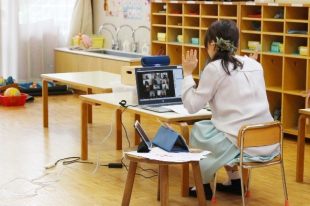 「おはようございます!」先生たちと朝のご挨拶でリモート保育スタートです