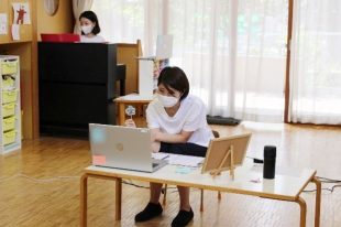保育室で半数の園児の保育を続けながら、アトリエでは3名の先生方による在宅の園児に向けたリモート保育の動画配信を行いました。ある日のリモート保育の様子をご紹介します。