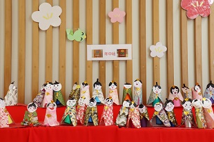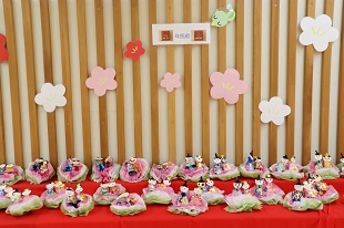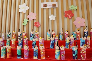 廊下には華やかなひな人形が飾られました