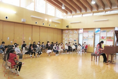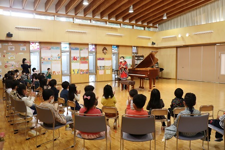 3月10日(木)、幼稚園でふれあいコンサートを行いました。感染症対策として、学年ごとの3回公演でピアノのコンサートを鑑賞しました。