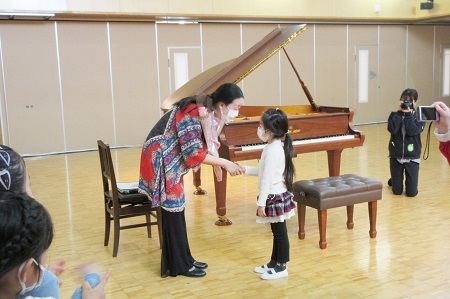 迫力あるピアノの演奏を間近で聴いた子どもたち。マナーを守って鑑賞することができました