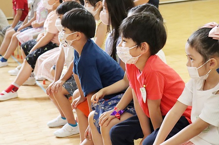 7月4日(月)、劇団風の子による劇の鑑賞会を、3クラスずつ2回に分かれておこないました。