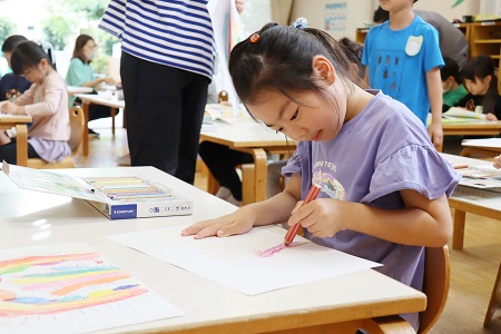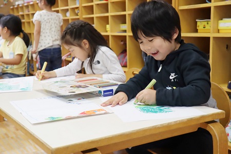 反対の手でも上手に手を動かし、楽しそうに絵を描く子どもたち