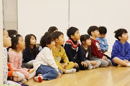 その後、子どもたちと同じぐらいの小さな子が登場する動画を見ました。スマホやタブレットを使って写真を撮影したり、撮影した写真を加工したり、絵を描いて友だちに見せたり、遠くの親戚とコミュニケーションを取ったり、主人公がインターネットを使って様々なことにチャレンジしている動画でした。その主人公から、交通ルールと同じようにインターネットを使う時も守るべき約束があることを教えてもらいました。