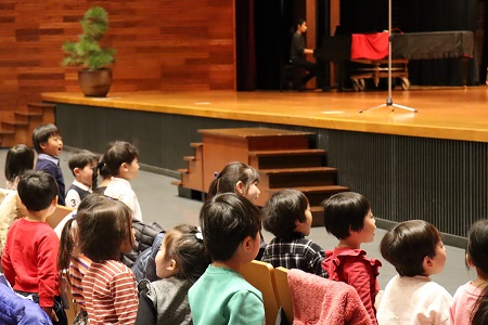 3月14日(金)、澤柳記念講堂にて令和5年度終業式と離任式を行いました。全園児が集まるのは今年度最後のため、当日は保護者の方々にもご出席いただきました。