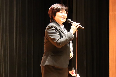 退任する教師の挨拶の様子