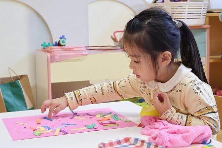 私の方で『こうやって糊を使いましょう』と、ただ子ども達へ答えを渡すのではなく、それぞれ自分にとっての「最適解」を自ら探すという行程が一段入ることで、目的を見失わない力、自分のゴールにまっすぐ辿り着く力の基礎づくりへと繋がってくれれば良いなと思います。