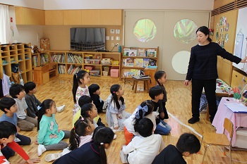 教師が、「インターネットって知ってる?」「インターネットでどんな事をしてる?」と子ども達に投げかけると、「iPadでYouTubeを観てる!」「テレビでインターネットのアニメを観てるよ!」「ママのスマホでゲームをしてる!」等自分の知っていることをたくさん話してくれました。また、「30分だけゲームをするよ」「宿題をしたらやっていいんだよ」「ママに聞いてから使うよ」など、各ご家庭での約束事についても教えてくれました。