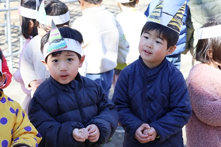 1月31日(金)、園庭で節分の豆まきをしました。