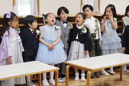 卒園児たちは、幼稚園での3年間でたくさんのことができるようになり、見違えるほど大きく素敵なお兄さん、お姉さんに成長しました。4月からそれぞれの新しい世界での活躍を期待しています。卒園おめでとうございます。