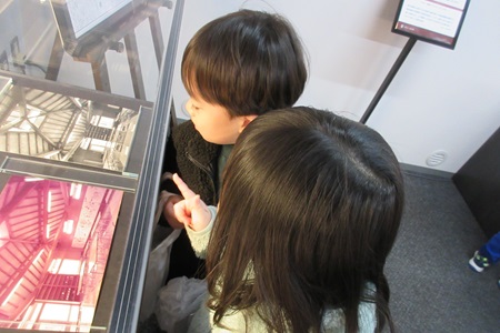 その後も、学園の創立者 澤柳政太郎の紹介や、学園初代校旗、昔実際に学校で使用していたチャイム等、たくさんの展示を見学しました。子どもたちにとって、毎日通う幼稚園の長い歴史や伝統を知る学びの機会となりました。