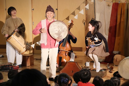 1月16日(金)、中世・ルネサンス時代の古楽器や世界の民族楽器を使って演奏する「ロバの音楽座」の皆さんをお招きし、音楽鑑賞会を開催しました。バグパイプやハーディガーディなど、普段目にすることのない希少な楽器や、温かみのある手作りの楽器で、多彩な音色が奏でられました。